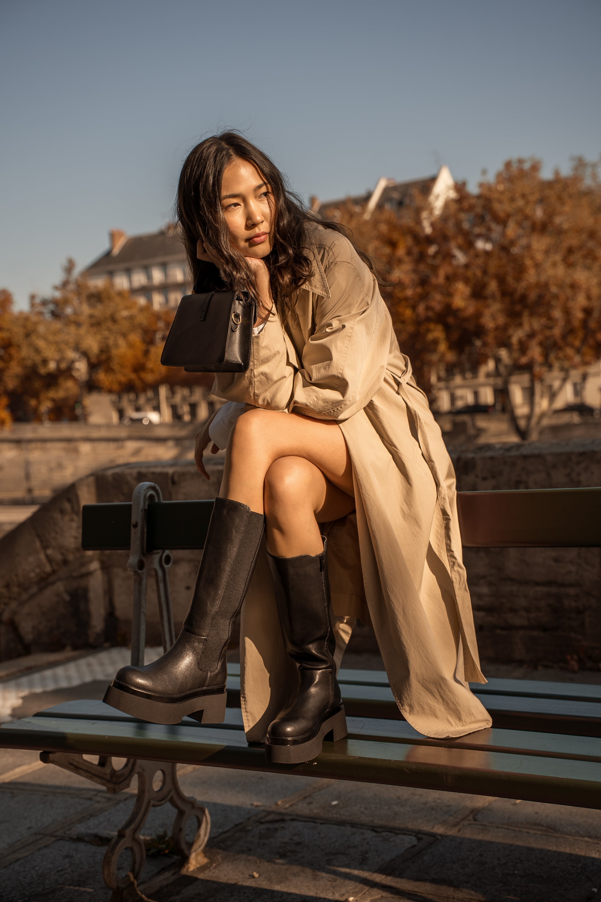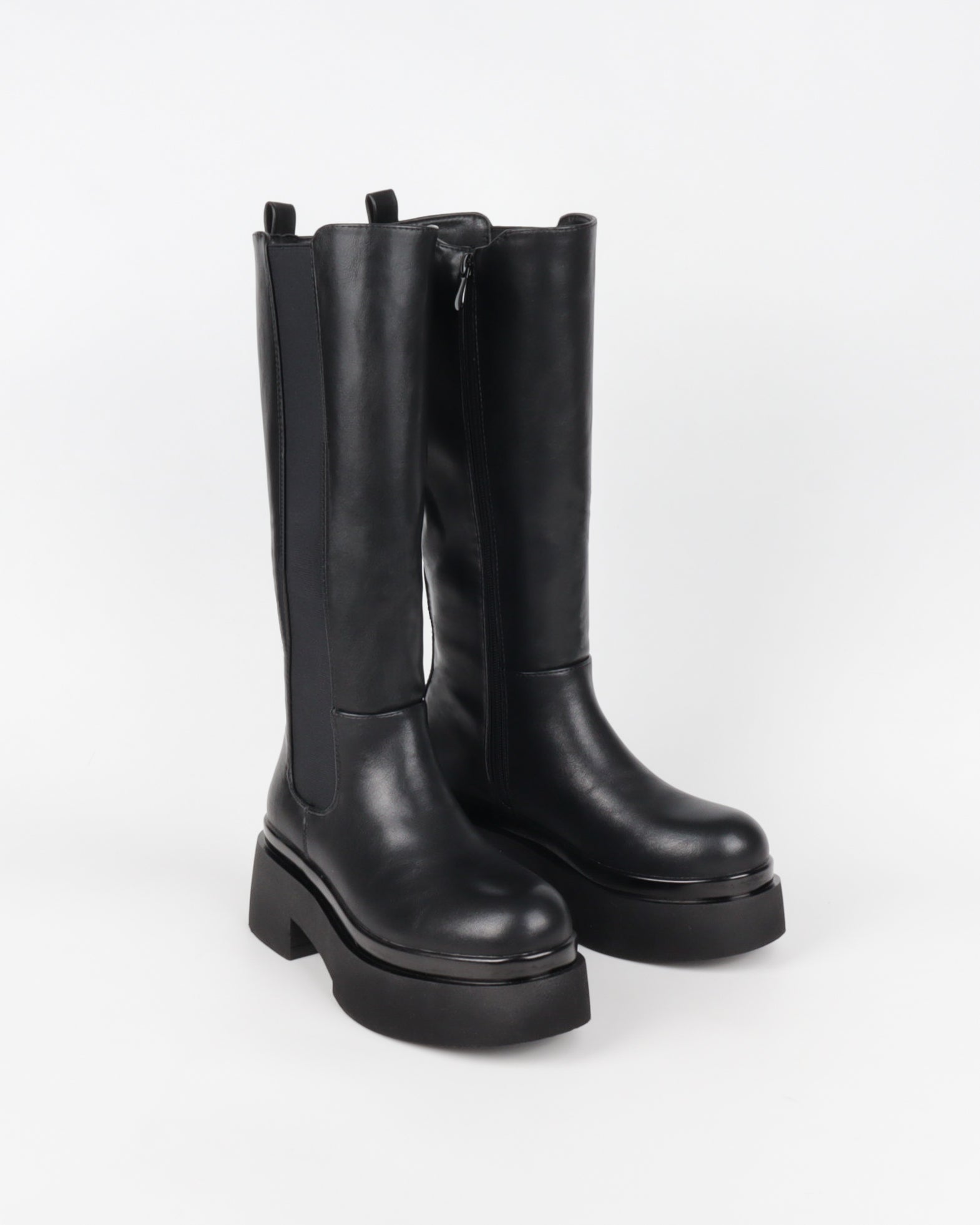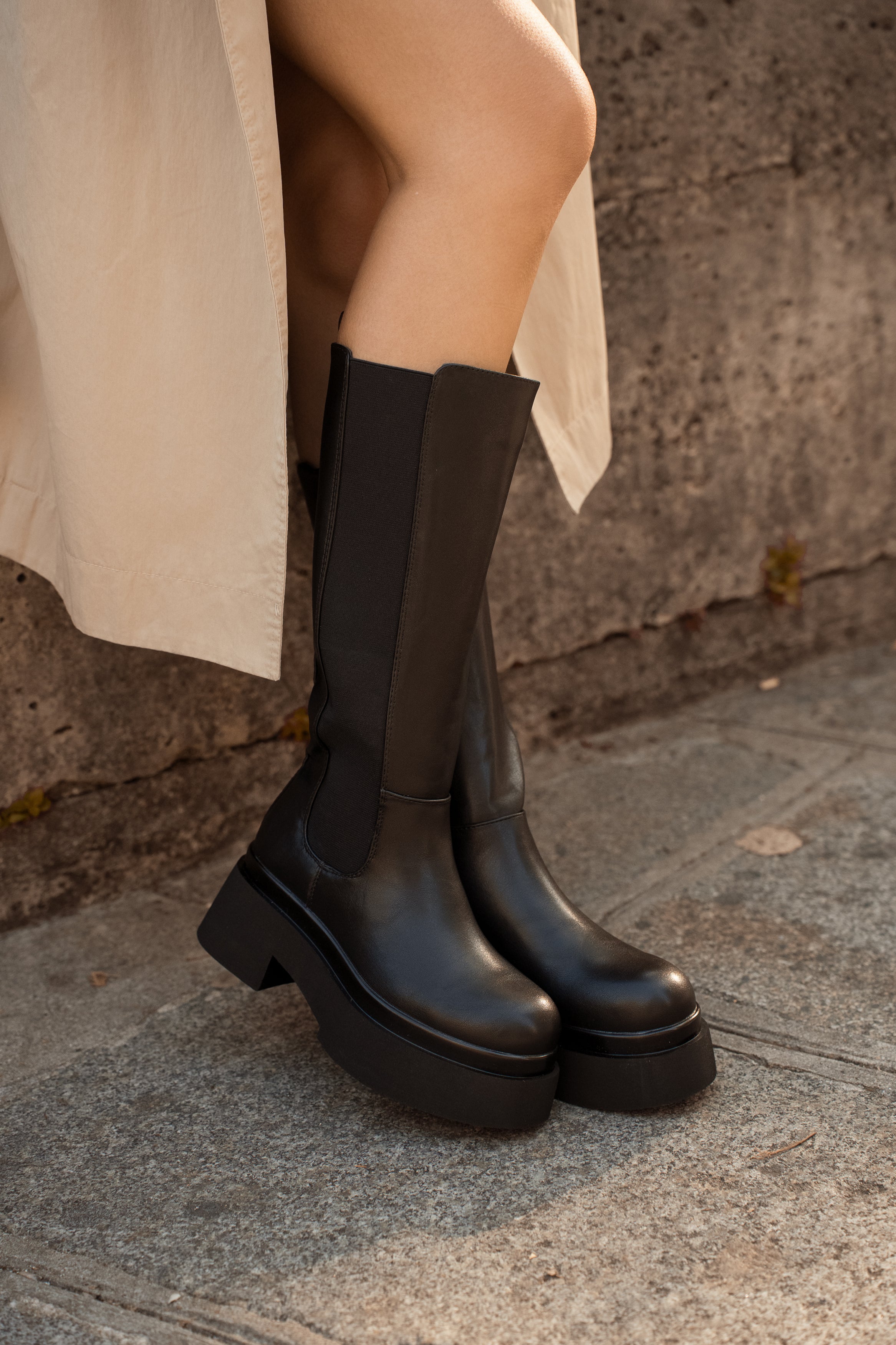 Les bottes Iris affichent une silhouette haute et épurée, portée par une semelle épaisse au style affirmé. Leur tige structurée est complétée par un empiècement élastiqué et une fermeture zippée, pour un enfilage facile et un bon maintien. Une paire moderne et robuste, idéale pour structurer une tenue urbaine et donner du caractère à un look du quotidien.