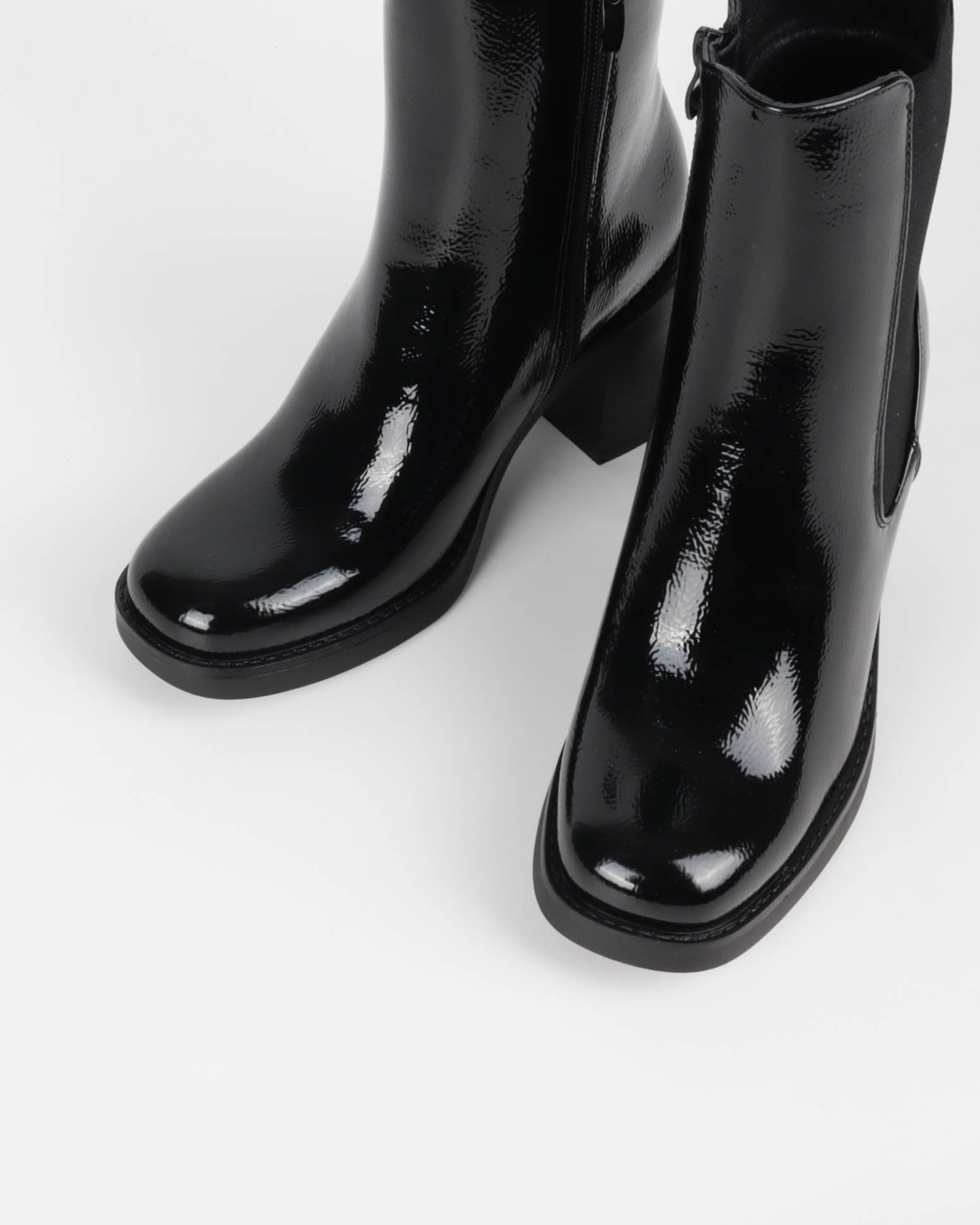 Avec leur finition vernie et leur talon épais, elles allient style contemporain et confort au quotidien. Leur coupe Chelsea revisitée leur apporte une touche tendance, facile à enfiler grâce aux empiècements élastiques et d'une fermeture éclaire intérieur.