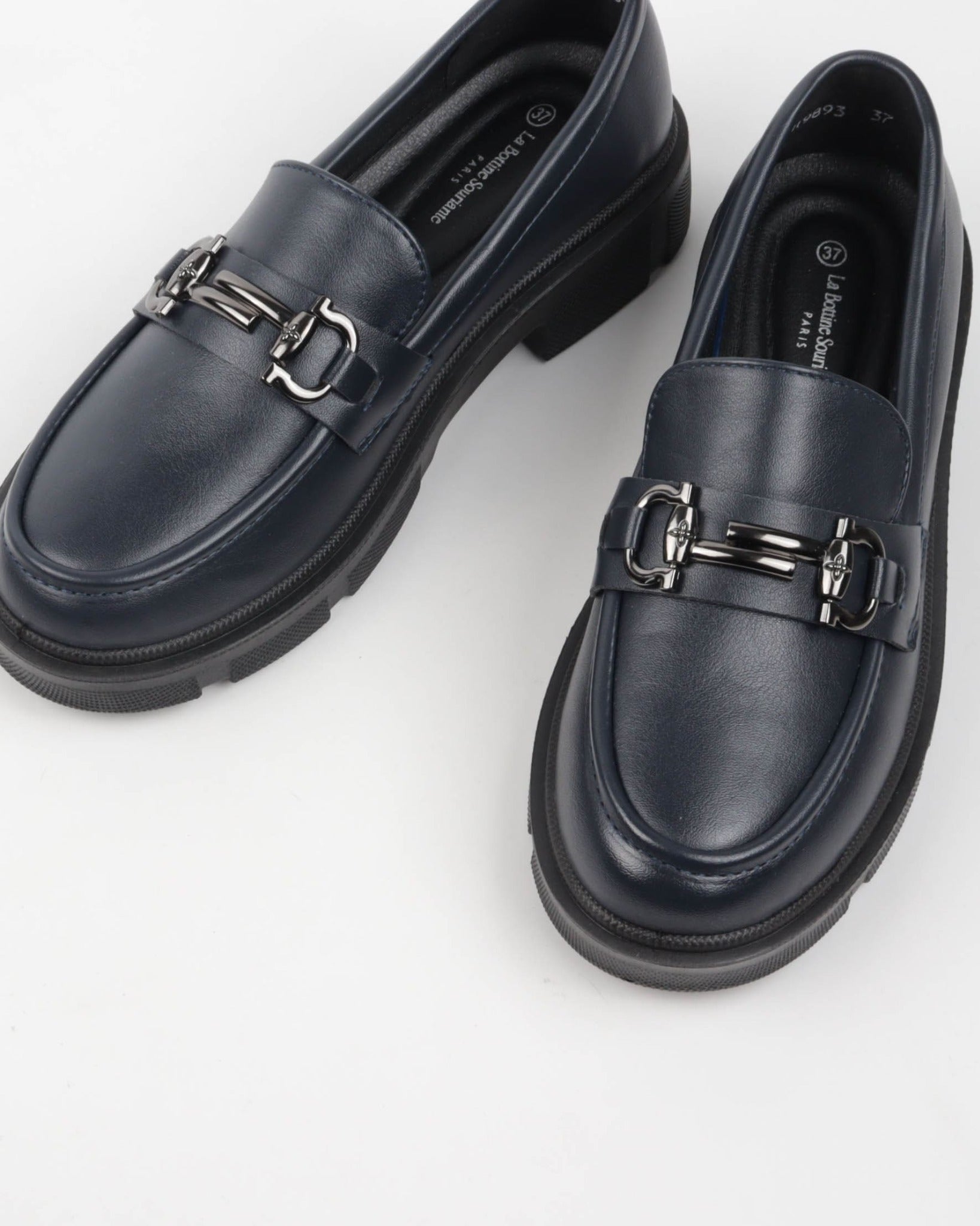 Suzanne réinterprète le mocassin pour femme dans une version affirmée, portée par une semelle crantée, souple et confortable, qui structure immédiatement la ligne. Son dessus épuré, son bout arrondi et sa construction nette en font une paire facile à intégrer dans un vestiaire du quotidien. Avec un jean droit, un pantalon large ou une jupe midi, elle apporte du relief sans alourdir la silhouette. Un modèle pensé pour celles qui aiment les essentiels de caractère, entre allure citadine, présence nette et style facile du matin jusqu’au soir.